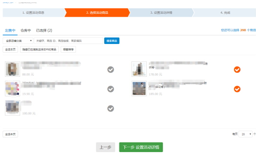 下一步是选择活动商品,热卖款的宝贝最好和上新款的宝贝风格相似,或者说刚好能搭配(上衣配裤子、裙子配防晒衫等等)这样才能把热款宝贝人群引到新款上。
