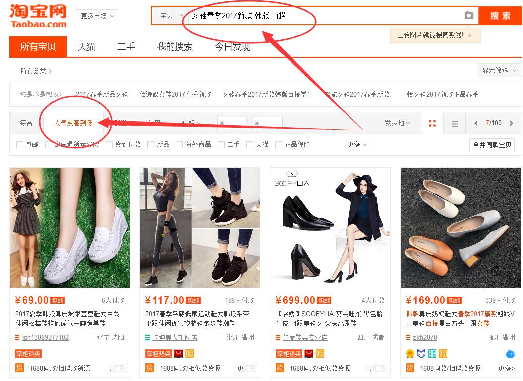 通过提升他的产品人气,然后得更多的人气排名,我们通过搜索一个关键词,我们可以看到在搜索结果页面上有人气的排名,而这个人气排名的话就是你的销量比较低,即使你是刚上架的新品,只要人气足够,也是能够获得很好的排名。