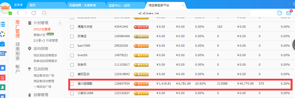 上周报名10个淘客,基本上就这2家有效果,其他无点击也无效果,这2家可以作为长期推广合作之一: 方式为高佣金鹊桥计划。
