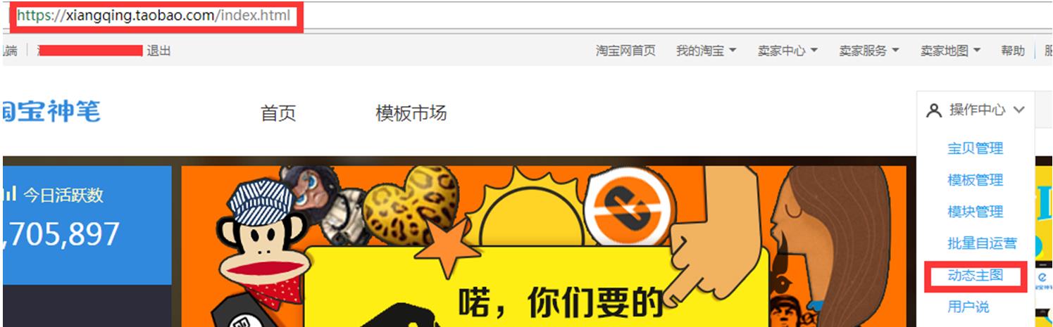 登录到淘宝神笔(链接是:xiangqing.taobao.com)之后,点击如图所示的动态主图,在动态主图显示出来的页面,在点击添加关联动态主图,注意这里会出现两个选择:一个是关联全景主图,一个是关联视频主图,我们在这里选择关联视频主图(全景主图我们在后面一个模块会讲到)。
