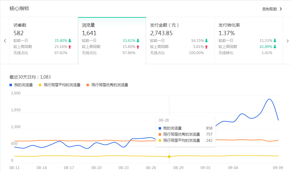 2、如果你已经在3-5这个层级内了,从10月份开始,你以周为单位,每周增加一些在直通车上面的花销。我们可以把日限额慢慢的去增加,只开精准词,多开计划。因为在这段时间买家观望,所以转化率会下降,你可以通过一些店铺内的活动来拉升一下你的转化率。在这个期间因为整体市场的原因,所有同行的转化都在下降,支付宝成交金额也都在下降,而你甚至可以做到再上升一下,一升一降,你的层级排名会上升的比较快。这样可以保证你的排名是一直上升的,即使在双十一来的时候,你的层级没有突破,也会得到搜索引擎的青睐,因为你的层级内排名在持续稳定的上升。