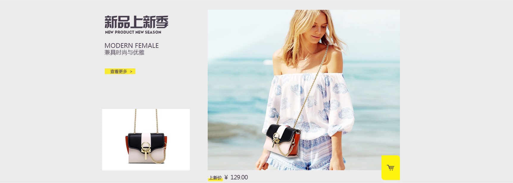 第一种技巧也是最常用的方法,就是开门见山放爆款!对于店铺内的爆款或者是潜力爆款,大家一定要把它放在店铺里面最显眼的位置,通常店铺的首屏是由首页的焦点图来完成的,因此大家应该全力打造次屏,让爆款占据这个位置,因为通常来说,爆款是很多人都会去喜欢并且销量也是非常大的,把这样的宝贝放在这样显眼的位置上,并且做大爆款的单品展示设计,大到足以完全展示单品本身而达到放大卖点的一个效果。如下图所示,