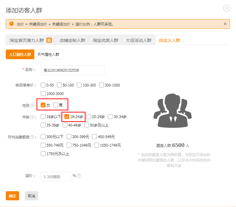 人群的数据优化对于直通车的计划数据影响也是非常大的,在人群优化中前期先以年龄和性别的形式分阶段去测试宝贝的目标人群去做重点投放提升溢价,加大精准人群的流量数据的影响。